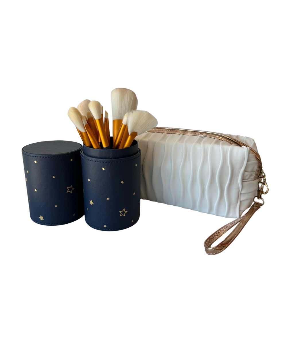 O Kit Glamour é o presente ideal para quem ama maquiagem, organização e estilo. Composto por uma nécessaire elegante e um kit de pincéis de maquiagem de alta qualidade, ele oferece praticidade e sofisticação no dia a dia.